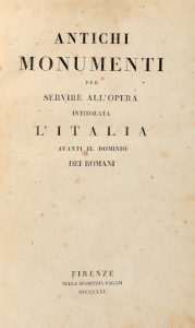 MICALI GIUSEPPE, — Antichi monumenti per servire all'opera intitolata l'Italia avanti il dominio dei romani. — Firenze : nella stamperia Pagani, 1821. — In-folio (mm 460x320).