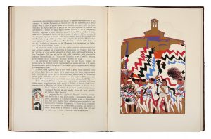 Pagine 149, 1 bianca con molte e bellissime xilografie a colori nel testo, di cui 29 a piena pagina, raffiguranti stemmi delle contrade e momenti del Palio.