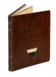 Bella legatura editoriale in piena pelle con titolo e stemma impressi a secco con finiture in tessuto colorato al piatto anteriore e rappresentazione di leone, sempre a secco, a quello posteriore ; dorso e cerniere un poco lisi, punte stanche e piccole spellature sulla stemma al piatto posteriore.
