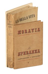 Prima edizione del 1935 con correzioni autografe di Moravia. Le opere che si aggiungono presentano anch'esse dediche autografe dell'autore.