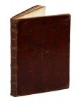 Legatura muta coeva in pieno marocchino rosso con doppia cornice di triplice filetto impressa a secco ai piatti, leggermente lisa a dorso e piatti..
