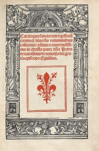 NATALI PIETRO, — Catalogus sanctorum et gestorum eorum ex diversis voluminibus collectus. — (Al colophon : ) Lugduni : Jacobum Saccon, 1519 die vero ultimo mensis Januarij. — In-folio (mm 305x200).