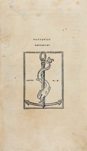 PAUSANIAS, — Pausanius. — (Al colophon : ) Venetiis : in aedibus Aldi, et Andreae soceri mense iulio, 1516. — In-folio (mm 300x200).