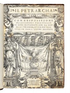 PETRARCA FRANCESCO, — Il Petrarcha con l'espositione d'Alessandro Vellutello... — In Venetia : appresso Gabriel Gioli di Ferrarii, 1544. — In-4° (mm 193x140).
