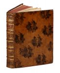 Legatura settecentesca in pelle maculata con titoli dorati su tassello al dorso a 5 nervi, tagli rossi..