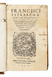 PETRARCA FRANCESCO, — De remediis utriusque fortunae ad Azonem libri duo, multo quam antea diligentius ab erratis, quibus scatebant, repurgati atque emendati. — Lutetiae : apud Sebastianum Nivellium, 1557. — In-16° (mm 115x72).