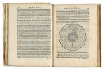 Con molte illustrazioni xilografiche nel testo, della sfera celeste, della sfera terrestre e diagrammi. Marca tipografica al frontespizio incisa in legno, grandi capilettera xilografici in apertura di ogni libro.