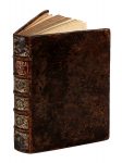 Legatura settecentesca in piena pelle maculata con titoli dorati su tassello (in parte mancante) e decori floreali al dorso a 5 nervi..