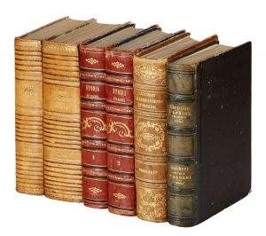 Opera nel complesso in buone condizioni, nonostante la mancanza di 3 tavole e fioriture e arrossamenti. Legatura in mezza pelle coeva, con piatti in carta marmorizzata, e impressioni a secco al dorso con titoli e fregi impressi in oro.