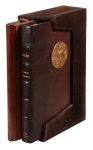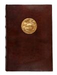 Legatura editoriale in piena pelle con scultura in bronzo a basso rilievo di Guido Veroi applicata al piatto anteriore.