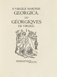 122 gravures sur bois d’Aristide Maillol. Texte latin et sa traduction française par l’abbé Jacques Delille. ¶ Édition limitée à 750 exemplaires, tous sur papier de chanvre et lin.