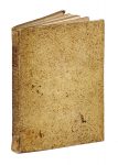 Legatura coeva in piena pergamena rigida con titolo in oro su tassello al dorso e piatti spruzzati.