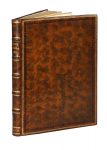 Legatura novecentesca in piena pelle maculata con cornice di motivi geometrici impressa a secco ai piatti e contornata da roulette dorata di fregi fitomorfi..