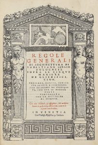 SERLIO SEBASTIANO, Regole generali di architettura [...] sopra le cinque maniere de gliedifici (sic!) cioè, thoscano, dorico, ionico, corinthio e composito.... — In Venetia (Al colophon : ) In Vinegia : per Pietro de Nicolini da Sabbio ad...