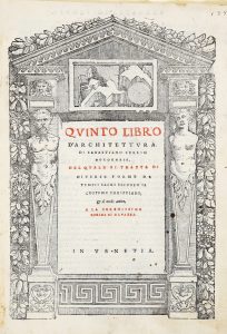 SERLIO SEBASTIANO, — Quinto libro d'architettura [...], nel quale si tratta di diverse forme de tempii sacri secondo il costume christiano, & al modo antico... — In Venetia (Al colophon : ) In Venetia : per Pietro de Nicolini de Sabbio ad...