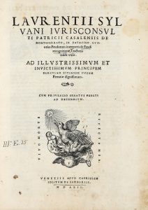 SILVANO LORENZO, — De feudi recognitione, tractatus valde utilis. — Ad illustrissimum et invictissimum principem Herculem Estensem — Venetiis : apud Gabrielem Iolitum de Ferrariis, 1542. — In-folio (mm 290x208).