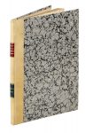 Legatura novecentesca in mezza pergamena con piatti rivestiti in carta marmorizzata e titoli impressi in oro su tassello al dorso.