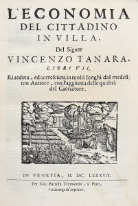 TANARA VINCENZO, — L'economia del cittadino in villa... — Venezia : Gio. Battista Tramontin a' Frari, 1687. — In-4° (mm 230x175).