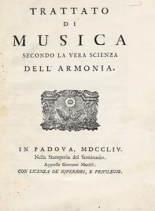 TARTINI GIUSEPPE, — Trattato di musica secondo la vera scienza dell'armonia. — Padova : Giovanni Manfrè, 1754. — In-4° (mm 240x180).