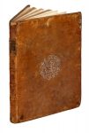 Legatura in pelle coeva, con impressioni a secco ai margini e rosoni floreali al centro di entrambi i piatti ; dorso a 6 nervi in parte staccato, con titoli in oro molto abrasi. Evidenti fori di tarlo ai margini del piatto anteriore.