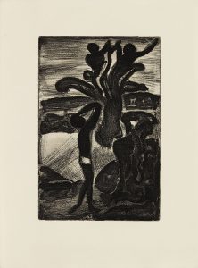 22 eaux-fortes originales de Georges Rouault et 104 dessins de l’artiste gravés sur bois par Aubert, dont la couverture. ¶ « Préservant la spontanéité de ses esquisses, Rouault les laisse porter sur cuivre par héliogravure. À partir de ce schéma qui met en place la construction de sa page et tend à attraper la forme dans son mouvement, il s’applique à faire accéder l’ensemble à la consistance d’une nouvelle matière, celle qu’implique la nature du support. Il le reprend peu à peu en entier, généralement par des retouches à l’eau-forte et à la roulette mordue, travaillant les fonds avec intensité au grattoir, au brunissoir. » (I. Rouault - F. Chapon, Œuvre gravé, Rouault, t. 1, p. 30). Rouault travailla pendant seize ans pour compléter l’illustration de cet ouvrage. ¶ Titage à 320 exemplaires, celui-ci l’un des 55 premiers exemplaires sur papier vélin de Montval, signés par l’auteur et l’artiste comprenant : - une suite des 22 eaux-fortes sur papier d’Arches. ¶ Quelques légères rousseurs éparses, prononcées aux pages 94 et 95. ¶ F. Chapon, Le Livre des livres de Rouault, p. 50 ; I. Rouault - F. Chapon, Œuvre gravé, Rouault, t. 1, p. 124 ; […]. Museum of fine arts, Boston. The Artist & the Book, 1860-1960, n° 270, p. 181 ; L. Carteret, Le Trésor du bibliophile, t. 4, p. 404 [« Édition rare, recherchée et cotée »] ; R. F. Johnson – D. Stein, Artists’ Books in the Modern Era, 1870-2000, n° 104, p. 179.