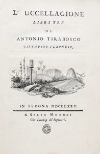 TIRABOSCO ANTONIO, — L'uccellagione. — Verona : Moroni, 1775. — In-4° (mm 275x190).