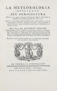 TOALDO GIUSSEPPE — La meteorologia applicata all'agricoltura... — Venezia : Gaspare Storti, 1775. — In-4° (mm 270x190).