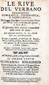 VAGLIANO GIOVANNI GIUSEPPE, — Le rive del Verbano descrizione geografica, idrografica, e genealogica, nella quale si contiene l'antichità delle famiglie nobili nate, originate, ed abitate in dette rive... — In Milano : per Marc'Antonio Pandolfo...