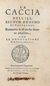 VALVASON ERASMO (da), — La caccia... — Bergamo : Comin Ventura, 1593. — In-8° (mm 170x115).