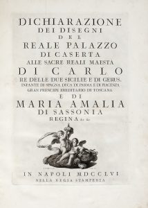 VANVITELLI LUIGI, — Dichiarazione dei disegni del Reale Palazzo di Caserta... — In Napoli : Nella Regia Stamperia, 1756. — Formato atlantico (mm 660x460).