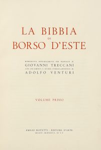 VENTURI ADOLFO, — La Bibbia di Borso d'Este. — Milano : Bestetti, 1937. — 2 volumi in-folio (mm 410x300).
