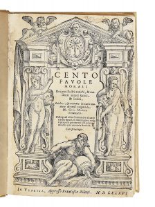 VERDIZOTTI GIOVANNI MARIO, Cento favole morali, de i più illustri antichi, & moderni autori Greci, & Latini... — Venetia : appresso Francesco Ziletti, 1586. — In-4° (mm 190x134).