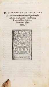 VITRUVIUS MARCUS POLLIO, — De architectura Libri decem nuper maxima diligentia castigati atque excusi, additis, Iulij Frontini De aqueductibus libris propter materiae affinitatem. — (Al colophon : ) Impressum Florentiae : per haeredes Philippi...
