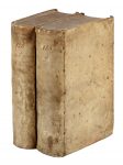 Legatura coeva in piena pergamena rigida con risvolti, titoli manoscritti al dorso ; qualche forellino e altri segni del tempo. Nota di possesso datata 1634 ai fogli di guardia..