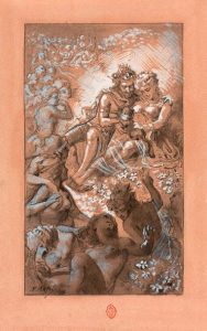 Suite de 6 dessins originaux signés pour les Contes de Moncrif. Chacun 145 x 85 mm, crayon, lavis d'encre de Chine et rehauts de blanc sur papier, montés sur ff. de carton souple. Charmantes compositions destinées à la suite gravée par Eugène Gaujean (frontispice et 5 planches) publiée en 1882 par la maison Quantin pour accompagner son édition des Contes de François-Augustin-Paradis de Moncrif parue en 1879. Joint, 3 exemplaires de cette suite gravée, soit : un tirage sur hollande dont les planches ont été montées anciennement sur les chemises de papier contenant les dessins (portefeuille de l'éditeur conservé) ; un tirage sur hollande avec remarques, en épreuves d'état ; tirage sur japon avec remarques.