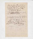 La présente lettre livre le détail d'un projet de 16 partitions séparées d'extraits de Roméo et Juliette, pour lesquels Georges Bizet propose notamment l'ajout de 20 vers de son invention. « Caro, voici nos Roméo. Je n'ai rien oublié. ... 5°... rêverie de juliette (sur la musique de l'entracte). Si mes vers ne vous plaisent pas, cher ami, vous n'avez qu'à faire reprendre la chose par Carré, mais je crois que ceci vaut les choses lâchées de ces messieurs [les librettistes Jules Barbier et Michel Carré] : Ô beau nuage blanc dont les bords argentés Reflètent de Phœbé les timides clartés ! Brise des nuits, haleine parfumée, Qui, mollement, berce la fleur charmée ! Et vous, oiseaux, chantres aimés des cieux, Charmants témoins de nos premiers aveux ! Volez vers l'exilé, vers celui qui fit naître En mon cœur cet amour que rien ne peut briser, Portez à Roméo, mon époux et mon maître, Mes larmes, mes soupirs et ce chaste baiser !... Je n'ai pas allongé les 3 entractes comme j'en avais l'intention – il faut les tailler tels qu'ils sont. Si vous les trouvez trop courts pour les publier séparément, pourquoi ne les réuniriez-vous pas sous ce titre : Les entractes de Roméo. N°1. Le balcon de Juliette. N° 2. Marche funèbre. N° 3. Le sommeil de Juliette. J'ai simplifié les passages trop difficiles ! Ci-joint les épreuves du rendez-vous, orchestre et 4 mains... ».