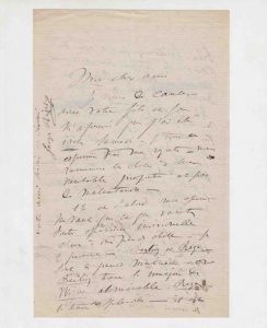 Lettre autographe signée [à l'éditeur musical Antoine de Choudens]. S.l.n.d. 4 pp. in-8. « Mon cher ami, je viens de causer avec votre fils et je m'aperçois que j'ai été idiot, samedi. Je vous en exprime tous mes regrets, mais ramenons les choses à leur véritable proportion, et pas de malentendu. 1° Et d'abord, mon opinion ne vaut que ce que vaut toute opinion individuelle, c'est-à-dire peu de chose. Je le prouve : Berlioz et Reyer sont de grands musiciens, or Berlioz trouVe la musique de Wagner abominable, Reyer la trouVe splendide – il est bien évident que l'un des deux se trompe complètement. Je ne suis encore ni Reyer ni Berlioz et je puis me tromper. 2° En admettant que je ne me trompe pas au point de vue artistique, il y a mille chances pour que le public ne soit pas de mon avis. Je le prouve : j'admire Les Troyens [opéra d'Hector Berlioz], le public ne les aime pas. J'adore La Statue [opéra d'Ernest Reyer], le public est tiède. Pour moi, Sapho [opéra de Charles Gounod] est un immortel chef-d'œuvre, le public n'y est pas venu. Enfin, si j'avais le même goût que le public, je n'aurais pas fait nos pauvre Pêcheurs de crevettes [son propre opéra Les Pêcheurs de perles], opéra qui a été, s'il faut, hélas, l'avouer, peu du goût du public. Requiescat in pace. 3° je n'ai jamais porté de jugement sur un opéra que je connais pas et qui peut être excellent. Sur 8 ou 9 morceaux que je connais, 3, à mon avis, sont admirables, 3 ou 4 insignifiants, le reste pas bien (vous voyez que je n'atténue pas mon 1er jugement), mais qu'est-ce que cela prouve contre les chances de succès ? Absolument rien. 4 ou 5 beaux morceaux, il n'en faut pas tant pour un grand succès, parbleu ! Nous le voyons tous les jours. Ne pensez donc plus à mon étourderie. Lorsque je cause avec vous, je me rappelle bien que je parle à un ami, à un artiste (car vous avec le sens artistique excellent, et vous êtes peut-être mieux placé que moi, musicien de profession, pour juger certaines choses), et j'oublie souvent que je m'adresse à l'éditeur. Or, ce sera un grand succès, je le désire avec toute l'ardeur que j'apporte lorsqu'il s'agit de vous et de votre excellente famille. Pas d'énervement, et faites activer. Voilà qui est plus important que mon opinion. Une fois pour toute, n'accordez pas trop d'importance à l'opinion des musiciens, même lorsqu'il s'agit des meilleurs – on a la main à la pâte, on Voit à un certain point de Vue, on juge à traVers un parti pris sans s'en aperceVoir, et l'on se fourre le doigt dans l'œil. C'est peut-être ce qui m'arrive. Je vous le répète, mon opinion n'a qu'un mérite, la sincérité. Mais si cela ne doit pas vous inquiéter, vous ne devez pas non plus m'en garder rancune. J'ai été franc avec vous, ce n'est pas votre rôle de me le reprocher. Je n'ai pas besoin de vous dire que cette lettre est confidentielle, non pas que je ne sois pas prêt à soutenir mes convictions, mais... Du reste, avec vous inutile d'insister sur ce point. Au café – mauvaise plume – gribouillage inutile, mais dicté par un bon sentiment que vous savez apprécier. Votre ami sincère et dévoué... ». « je suis un chef d'orchestre de carton... ».