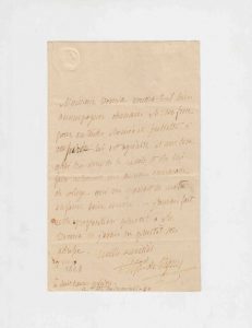 Poème et lettre, autographes signés. « La Frégate la Sérieuse » – Manuscrit poétique autographe signé intitulé « Fragment de La Frégate la Sérieuse », daté « 8bre 1829 ». Consacré à la bataille navale d'Aboukir en 1798, le poème « La Frégate La Sérieuse, ou la plainte du capitaine » parut originellement en mai 1829 dans la deuxième édition du recueil Poèmes antiques et modernes (sous le nouveau titre de Poèmes, Paris, Gosselin). Le présent extrait correspond à la pièce n° XV (« Le repos ») en entier et au premier vers de la pièce n° XVI (« Le combat ») de ce recueil. « ... Il dort et de son pied le large gouvernail / trouble encore, en ramant, l'eau tournoyante et douce, / Tandis que sur ses flancs se forme un lit de mousse, / De feuilles et de joncs et d'herbages errans / Qu'apportent près de lui d'invisibles courans. / – / Ainsi, près d'Aboukir reposait ma frégate ;... » (17 alexandrins sur 2 pp. in-4 oblong, quelques déchirures marginale dont une restaurée). Une variante avec le texte définitif imprimé : on peut lire ici, au vers 6, « se cache sous la plume au soleil essuyée », et non « se cache dans la plume au soleil essuyée ». Roméo et Juliette – Lettre autographe signée à Achille Devéria. Paris, 29 mars 1828. « Monsieur Devéria voudra-t-il bien accompagner demain Mr son frère [Eugène Deveria, artiste comme Achille] pour entendre Roméo et Juliette. Si cette soirée lui est agréable, il me sera aussi très doux de le revoir et de lui faire retrouver un ancien camarade de collège qui me parlait de notre enfance hier encore. » (1 p. in-8, adresse au dos, déchirure angulaire due à l'ouverture sans atteinte au texte). En 1828, en collaboration avec Émile Deschamps, Alfred de Vigny débuta une adaptation française de Romeo et Juliette de Shakespeare. Le texte fut lu en soirée privée chez Alfred de Vigny, le 31 mars 1828, puis reçu favorablement par la Comédie-Française le mois suivant. Cependant, jamais véritablement achevé, il a depuis été perdu. « je porte dans mon âme Le reflet des richesses stériles d'un grand nombre de rois oubliés... »