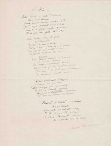 – MANUSCRITS POÉTIQUES. XIXe siècle. – Ensemble de 21 pièces. – About (Edmond). Poème autographe signé daté du 18 décembre 1851. « Lorsque tes beaux yeux noirs sous leur longue paupière / Font glisser mollement un regard de velours... » (4 quatrains d'alexandrins). – Augier (Émile). Citation poétique autographe signée. Passage de l'acte III de sa comédie L'Aventurière (18 vers). – Barthélémy (Auguste). Poème autographe signé intitulé « À Mr xxxx en lui adressant un médaillon contenant des cheveux de Napoléon ». « Cet écrin doublement scellé de mon empreinte, / C'est un rare débris, c'est une chose sainte, / ... / Au milieu d'une nuit de cruelle insomnie, / Un serviteur, témoin de sa lente agonie / recueillit ces rayons sur un soleil mourant » (2 sixains). – Béranger (Pierre-Jean de). Poème autographe signé intitulé « Bonhomme pas' passe ». Chanson libertine : « Les beaux pendants d'oreilles ! / Dit Nanon qui pressait / Deux cerises pareilles / Que leur queue unissait... » (3 huitains de couplets et un distique de refrain à répéter, tous hexasyllabes). – Courteline (Georges Moinaux, dit Georges). Poème autographe signé intitulé « Ève ». « Nos deux premiers parents pleuraient ce paradis... » (14 alexandrins). Sonnet dédié « à Madame Henri Lavedan ». – Delavigne (Casimir). Poème autographe signé intitulé « Épilogue », daté du 20 décembre 1826. « De l'antique élégie, allez, filles nouvelles, / Vous, dont la voix chanta la liberté... » (40 vers ; petit manque marginal). Poème originellement paru en 1827 dans son recueil Sept messéniennes nouvelles (Paris, Ladvocat). – Houssaye (Arsène). Poème autographe signé intitulé « À Théophile Gautier », daté du 11 avril 1843. « Quatre choses encor sont bonnes ici bas, / Une femme – un ami – la Muse – la paresse... / Ce matin je rêvais – une main dans ma main / Frémissait de plaisir – je songeais que demain / Je n'aurai rien à faire ! Amour, Muse et paresse ! / L'amitié me manquait : – on apporta La Presse » (16 alexandrins ; fente restaurée). Théophile Gautier tenait la critique dramatique dans le journal La Presse. – Mendes (Catulle). Poème autographe signé. « Avec tous les péchés anciens / De ces monstres parisiens, / Roses de musc, roses de fange, / j'ai fait un bouquet trs pervers : / Vous en ferez des lys noués de myrthes verts, / Rien qu'à les respirer, doux ange ! » (sixain). Catulle Mendès publia deux recueils poétiques intitulés Monstres parisiens, en 1882 et 1885. – Moreas (Jean). Poème autographe signé intitulé « Églogue à elle encore ». « J'eusse pu me nourrir de miel / Nouveau, pendant des mois, et bien que l'on prétende / Que sa saveur trouble les sens, / Je n'eusse été, certes, tant dépourvu de sagesse / Que pour avoir, de mes livres, ah, si peu ! / Effleuré ta bouche semblable au feu... » (32 vers, sur papier à en-tête imprimé du café Vachette à Paris). Pièce parue en 1891 dans la suite « Allégories pastorales » de son recueil Le pèlerin passionné (Paris, Vanier). – Richepin (Jean). Poème autographe signé intitulé « L'amour vainqueur ». « Vive l'amour vainqueur, dont la forme éternelle / Sait prendre autant d'aspects que notre rêve a d'yeux !... » (sonnet de 14 alexandrins ; signature biffée au crayon de couleur). - Richepin (Jean). Poème autographe. Brouillon d'un envoi sur un de ses livres au peintre Georges Rochegrosse : « Bon peintre aux doigts pleins de soleil, / Georges Rochegrosse, voici / Mon livre... » (12 octosyllabes). – Samain (Albert). Poème autographe signé. « Ses yeux glacés de vert, ses yeux déjà vus, – où ?... » (14 vers). Sonnet dédié à Rachilde, nom de plume de la sulfureuse femme de lettres Marguerite Eymery, qui fonda le Mercure de France avec son mari Alfred Vallette. – Sully Prudhomme (René-François-Armand Prudhomme dit). Poème autographe signé intitulé « Les Yeux ». « Bleus ou noirs, tous aimés, tous beaux, / Des yeux sans nombre ont vu l'aurore... » (20 octosyllabes). Pièce parue en 1865 dans son premier recueil, Stances et poèmes (Paris, Achille Faure). – Sully Prudhomme (René-François-Armand Prudhomme dit). Citation autographe signée : « Ici bas tous les lilas meurent, / Tous les chants des oiseaux sont courts ; / Je rêve aux étés qui demeurent / Toujours... » (8 vers). Passage de la pièce « Ici-bas » parue en 1865 dans son recueil Stances et poèmes (Paris, Achille Faure). – Également Jean-Nicolas Bouilly, Jérôme Doucet, Xavier de Montepin, Gustave Nadaud, Eugène de Planart (au verso du poème de Jean-Nicolas Bouilly), Eugène Scribe (2 pièces, dont « les fameux vers sur le parapluie » auxquels Honoré de Balzac fait allusion dans La Muse du département), Armand Silvestre. Joint : Sully Prudhomme (René-François-Armand Prudhomme, dit). Stances et poèmes. Paris, Achille Faure, 1865. In-18, reliure de l'époque en demi-chagrin rouge à dos à nerfs cloisonné. Édition originale, dont il ne fut tiré que quelques exemplaires de tête sur vélin fort. Également joint, des copies manuscrites anciennes du poème « Le Vase brisé » de Sully Prudhomme, et d'un sonnet d'Edmond Haraucourt.