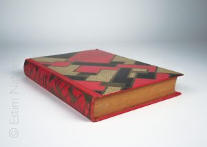 1 volume cartonnage éditeur illustré à décor géométrique rouge, noir beige et or, dos orné à l'or.