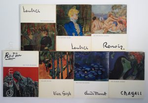 "La peinture au XXe siècle" et 7 monographies de peintres: Rodin, Chagall, Lautrec(2 exemplaires), Renoir, Van Gogh, Monet, très bon état.