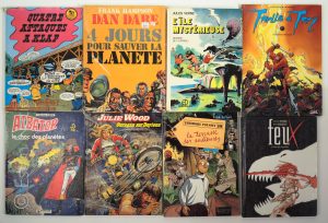 Ensemble de 12 bandes dessinées, DARGAUD (Albator) HUMANOIDES ASSOCIÉS (Dan Dare) LOMBARD (Olivier rameau ). JOINT: 4 ouvrages de varia, très bon état (Max VAPOR, Franky RAVI "Requins marteaux", ZINN "Une histoire populaire de l'Empire américain, HAIFISCH "The artist"). Détails selon photographies du lot