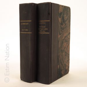 Ensemble de deux volumes, in-8, reliure percaline: Musset et Lamartine. JOINT: 4 volumes d'édition scolaire de Mallet, Paris, Hachette, impression 1908 à 1912, reliure éditeur, in-8, "l'antiquité, l'Empire, histoire moderne, histoire contemporaine".