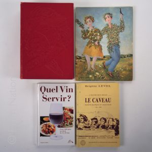 Ensemble de 10 ouvrages dont l'art culinaire français, album Nicolas 1972, quel vin servir, six monographies de vins de Bordeaux et Bourgogne, en bon état.