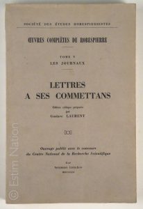 "Tome V des oeuvres complètes de Robespierre, les journaux, lettres à ses commettants", édition critique par Gustave Laurent, Paris, CNRS, 1961, in-8, broché, 375 pages, très bon état.