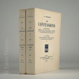 "Les confessions, édition intégrale publiée sur le texte autographe conservé à la bibliothèque nationale " par AD.Van Bever, Paris, Editions Crès, 1927, deux volumes in-8, brochés, 298 et 427 pages, imprimé sur vélin de rives, très bon état.