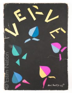 "Verve, revue artistique et littéraire paraissant quatre fois par an, numéro 8, volume 2", revue publiée à Paris, 1940, format in-folio, 73 pages, COUVERTURE DE HENRI MATISSE, reproductions de André Derain, Picasso, textes de Malraux, Adrienne Monnier, Paul Claudel, Georges Braque...exemplaire dérelié, manques sur les plats de couverture. Revue rare et recherchée. Ce numéro est paru le 1ier juin 1940, en pleine débâcle, Paris se vidant de ses habitants, et fut de fait très mal distribué, et est en conséquence peu courant.