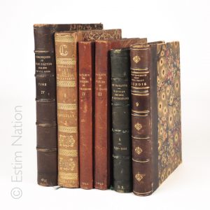 Bon ensemble de six reliures en format in-12 et in-8, Ronsard (volumes 3 et 4 des épîtres et discours), volume 4 des chroniques de Jean d'Auton, Thibaudeau (volume 6 de l'histoire de Napoléon), tome 9 des nouveaux lundis de Sainte-Beuve, tome 4 de l'histoire des ducs de Bourgogne de Barante. Très bon état.