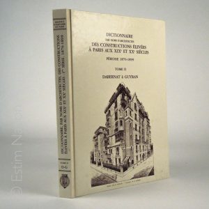 "Dictionnaire par noms d'architectes des constructions élevées à Paris aux XIXe et XXe siècles, période 1876-1899, tome II, Dabernat à Guyran", Paris, 1991, grand et fort in-4, 138 pages, reliure éditeur, avec de nombreuses planches hors-texte, très bon état.