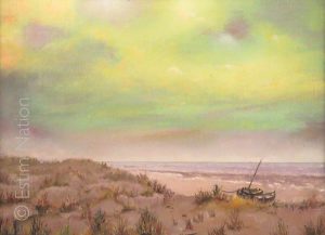 "Dunes et plage du Nord" 38 x 28 cm, très bon état. Signature Henri Leclerc, artiste régional du Nord de la France, deuxième moitié du XXe siècle, ancien élève de l'Ecole des Beaux-Arts de Tourcoing et de l'Académie des Beaux-Arts de Mouscron en Belgique, très bon état.
